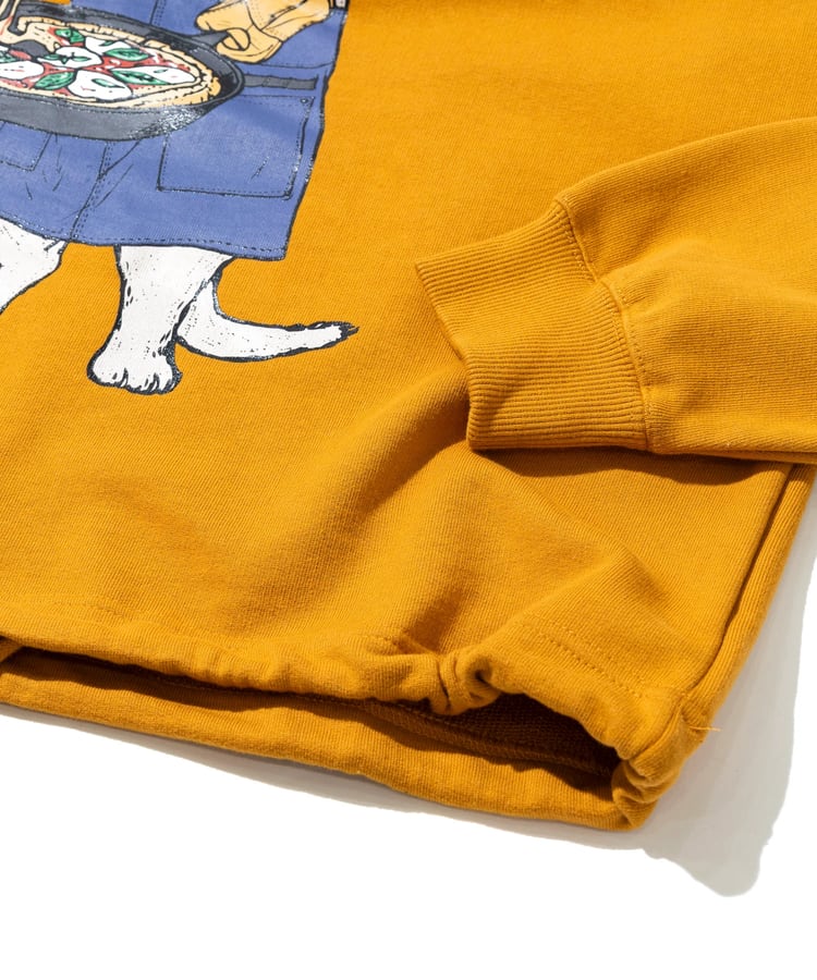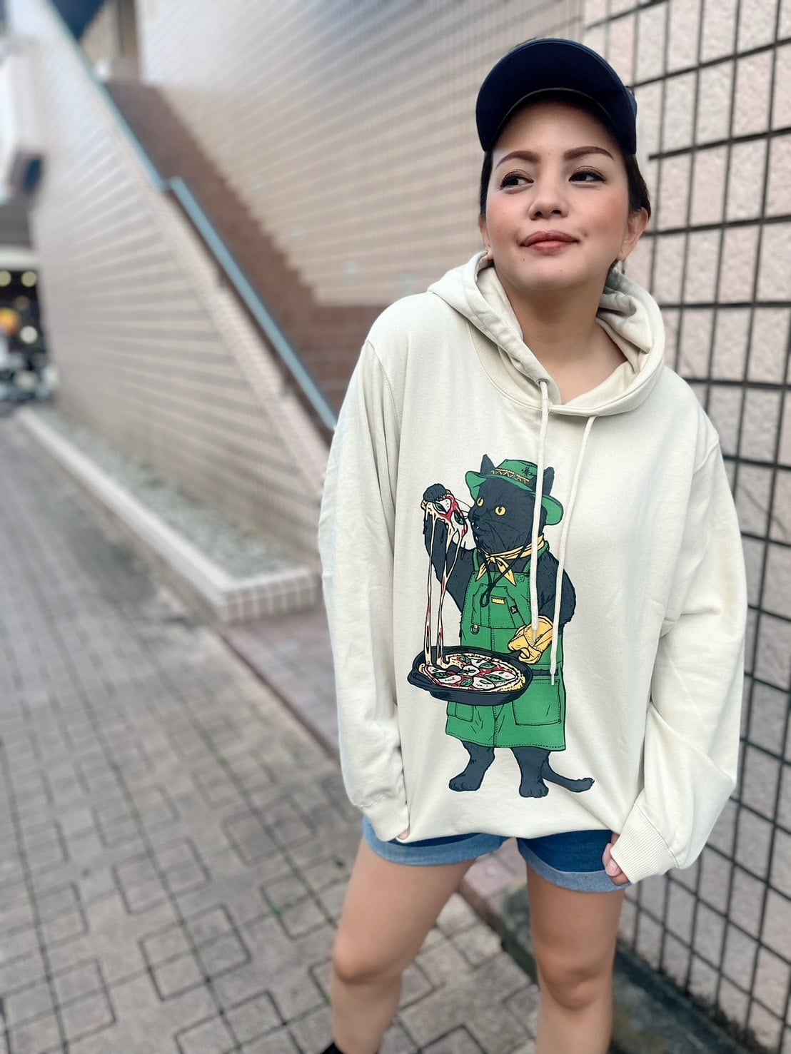 【goslowcaravan】空紡糸裏毛 スキレットピザ猫 ヘムスピンドルフーディー