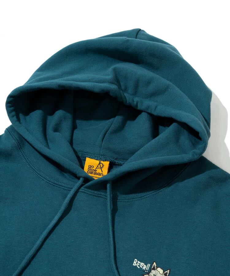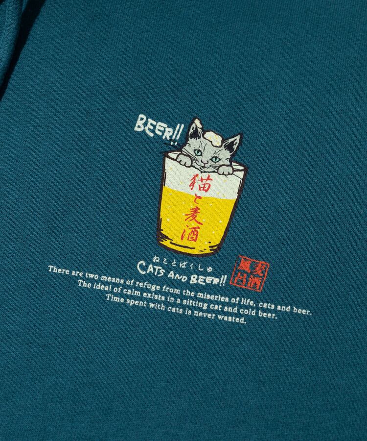 【goslowcaravan】空紡糸裏毛 猫と麦酒ヘムスピンドル BOX フーディー