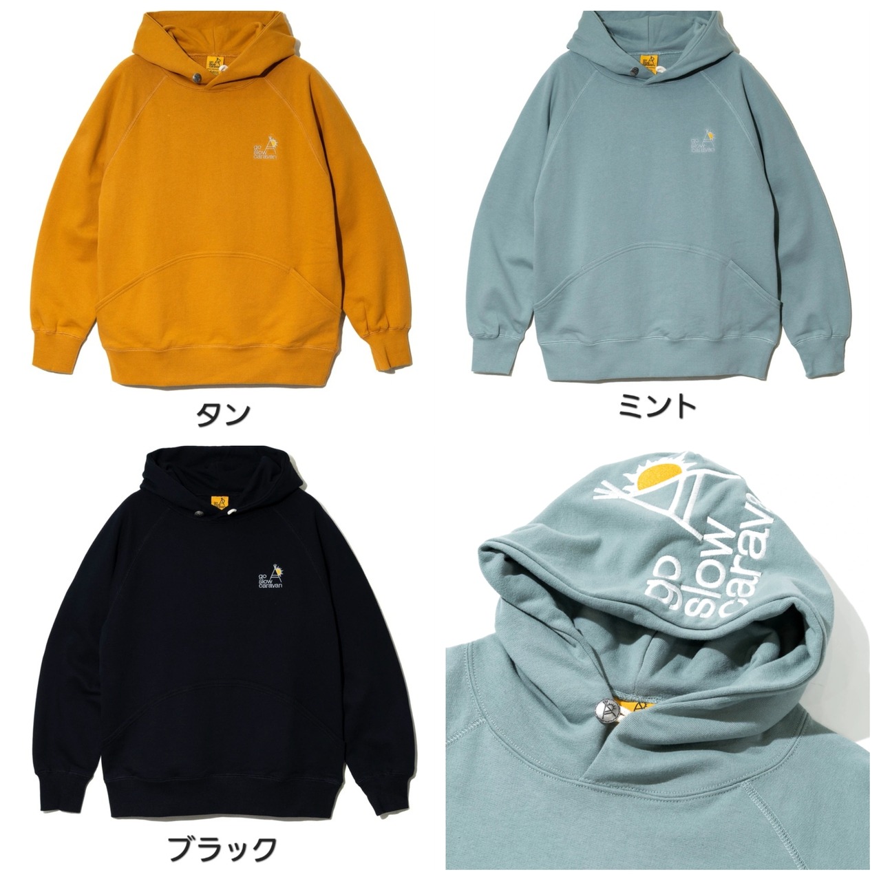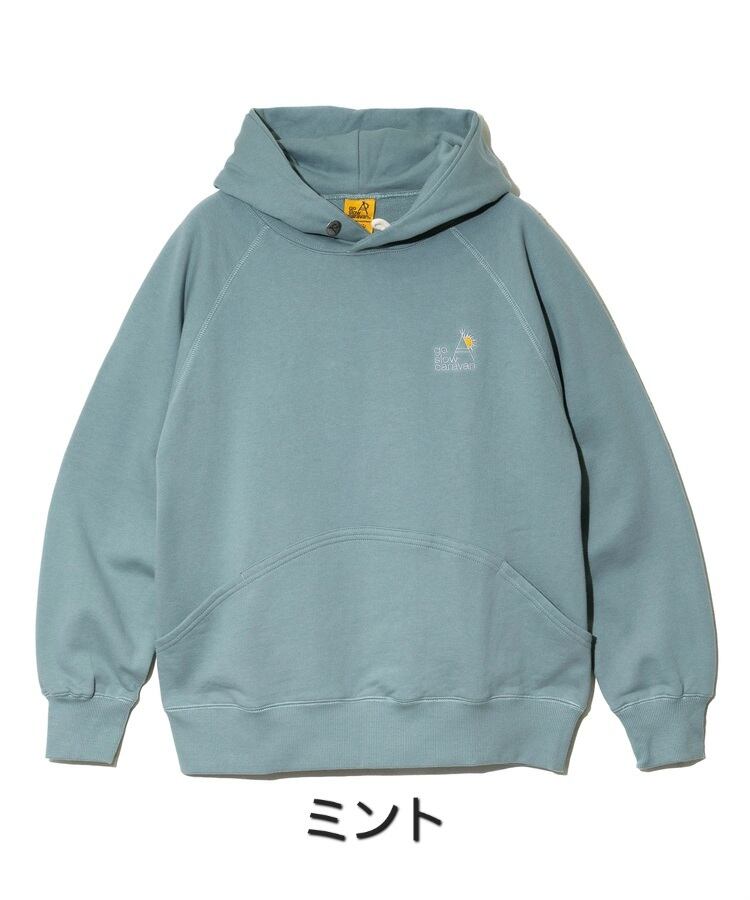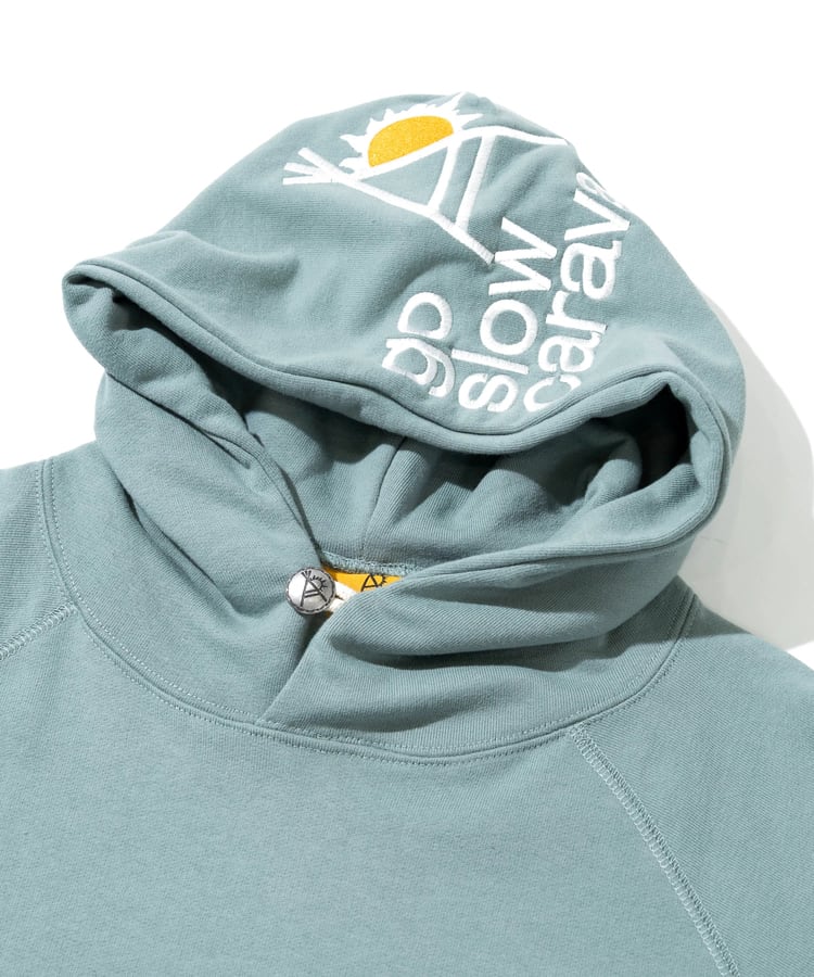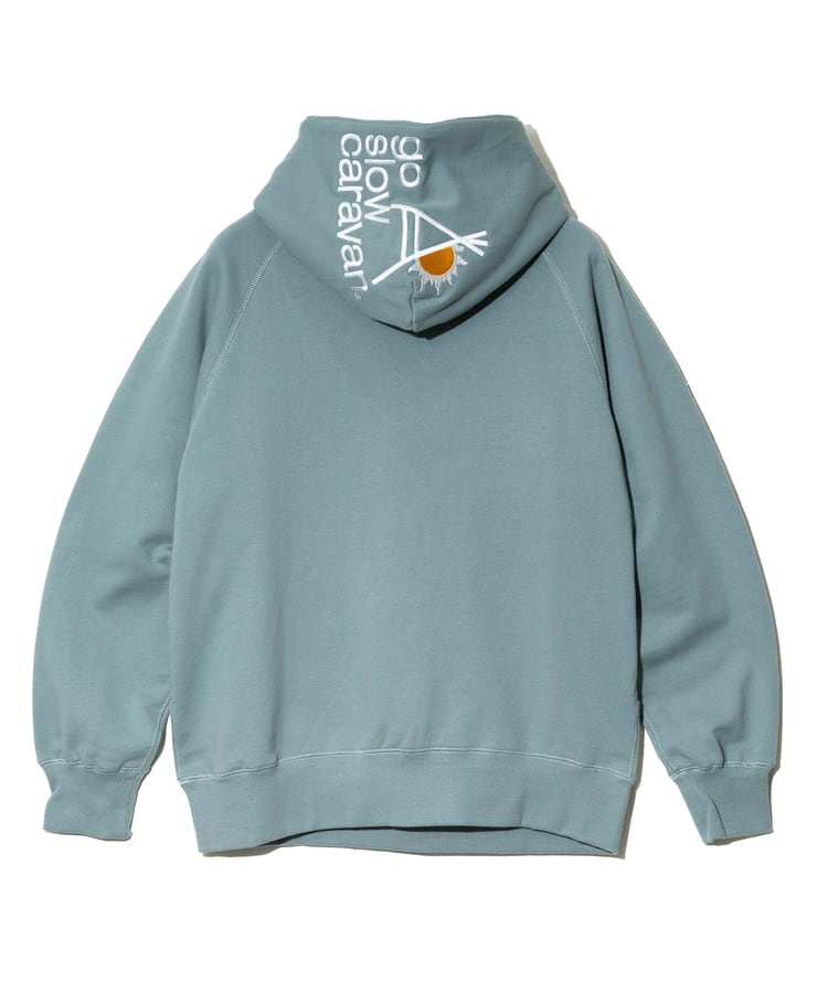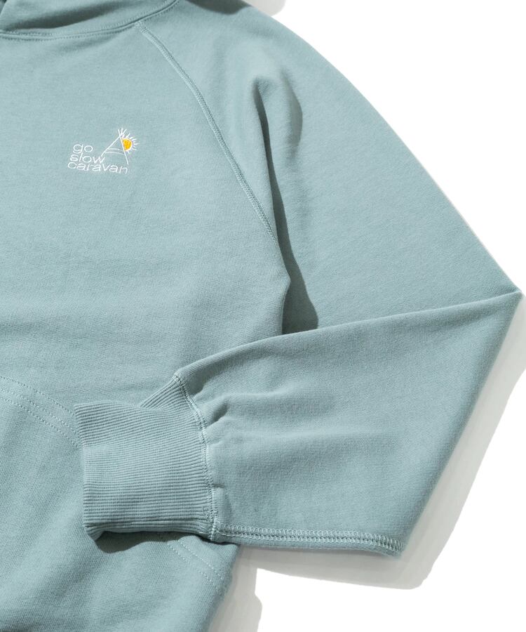 【goslowcaravan】空紡糸裏毛 フードLOGO刺繍プルパーカー