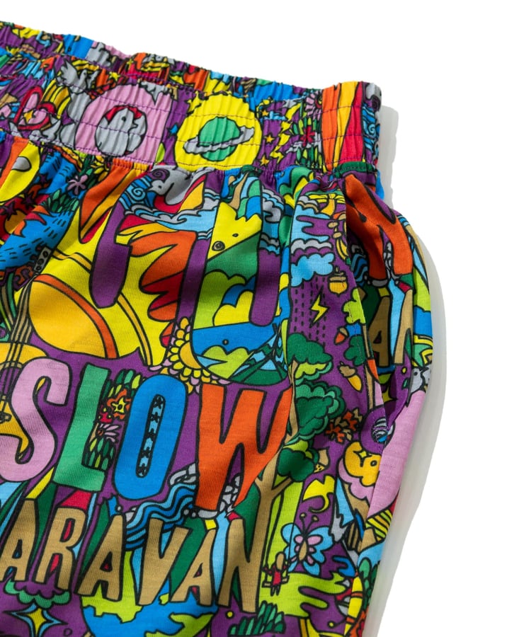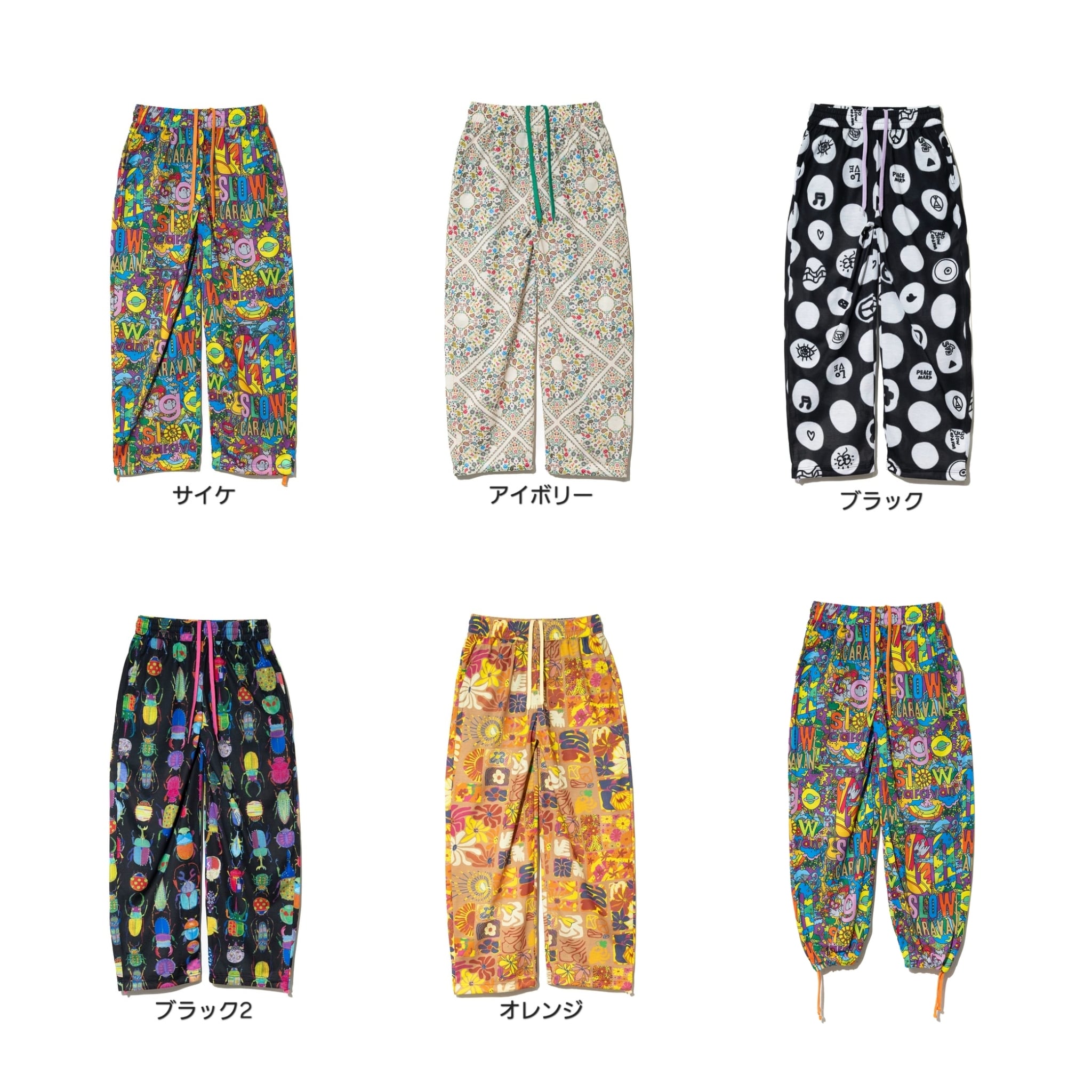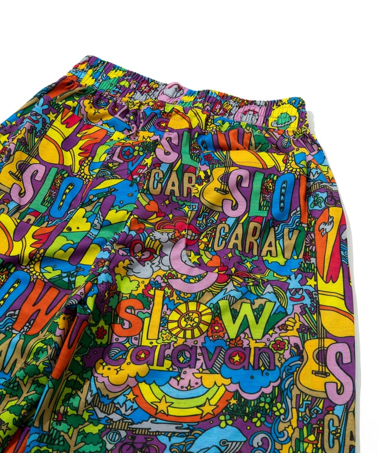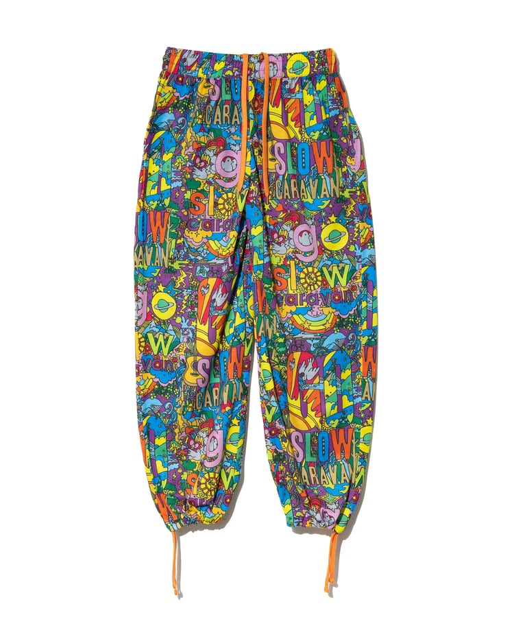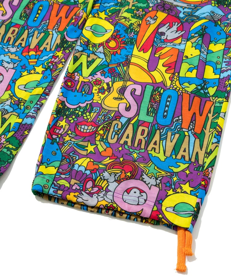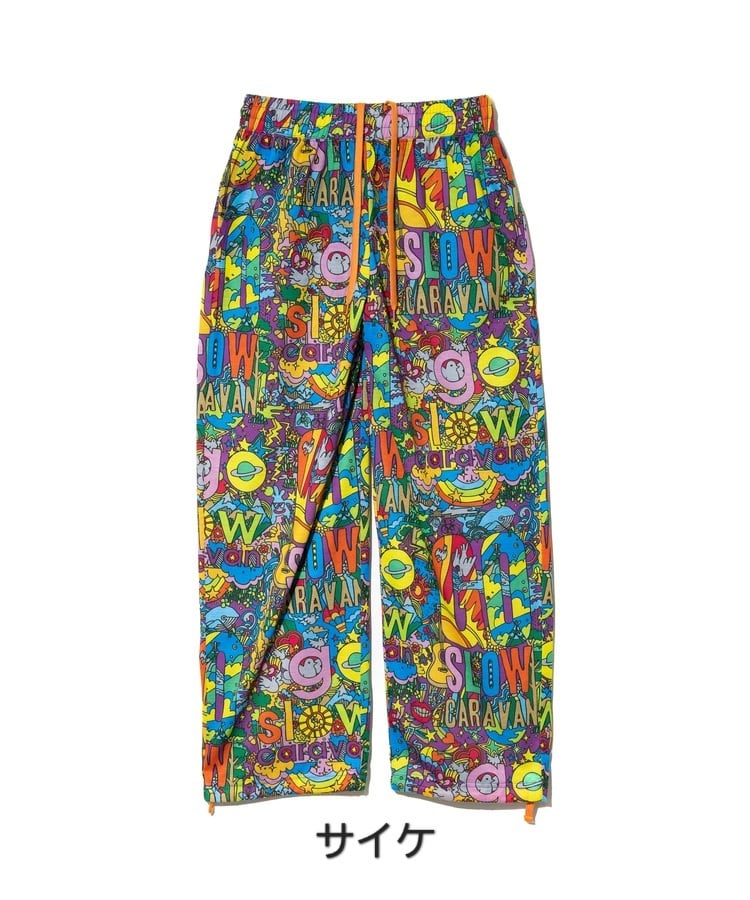 go slow caravanオリジナルの総柄シリーズ「ガラガラ」から登場したイージーワイドパンツ☆