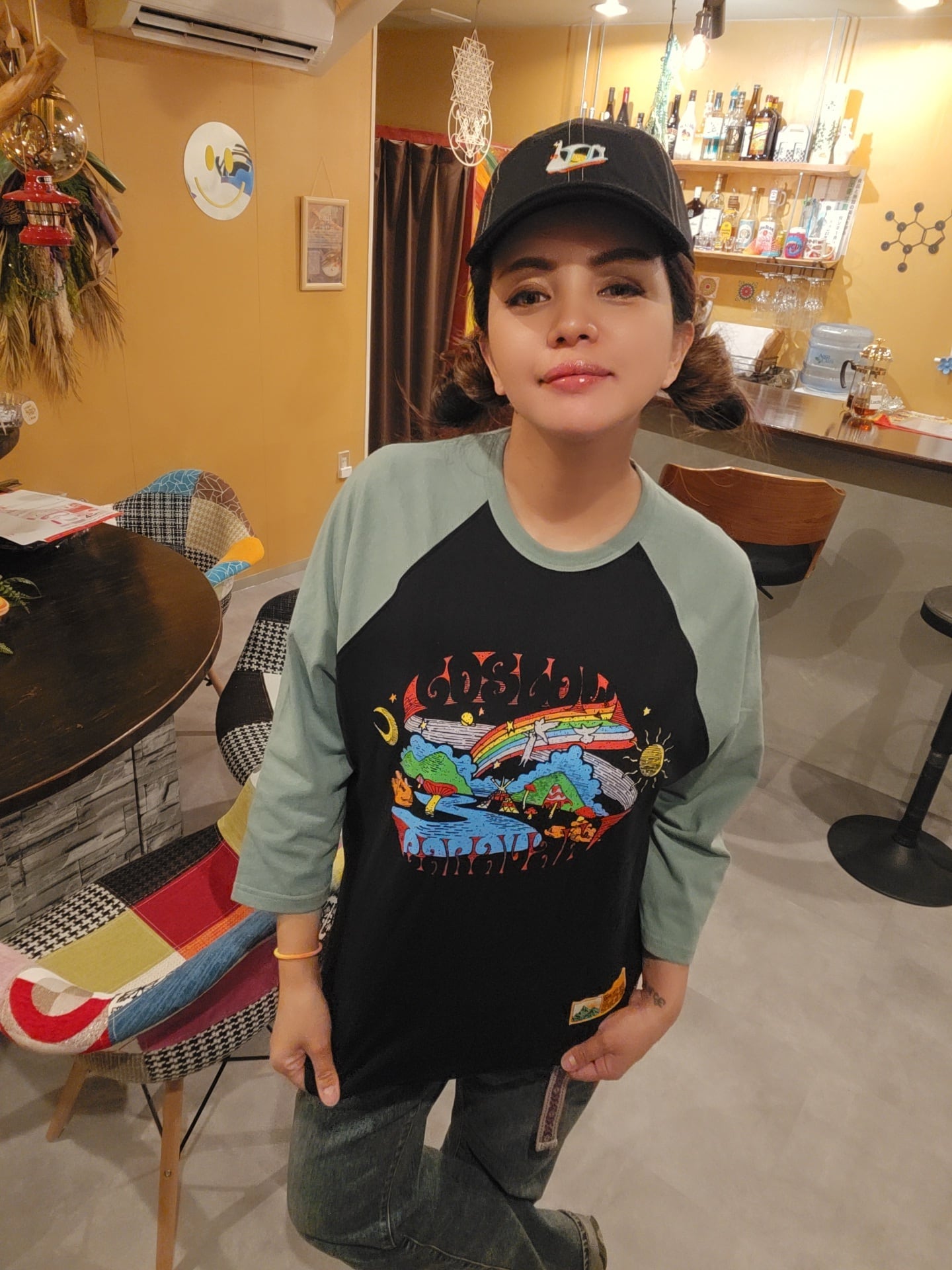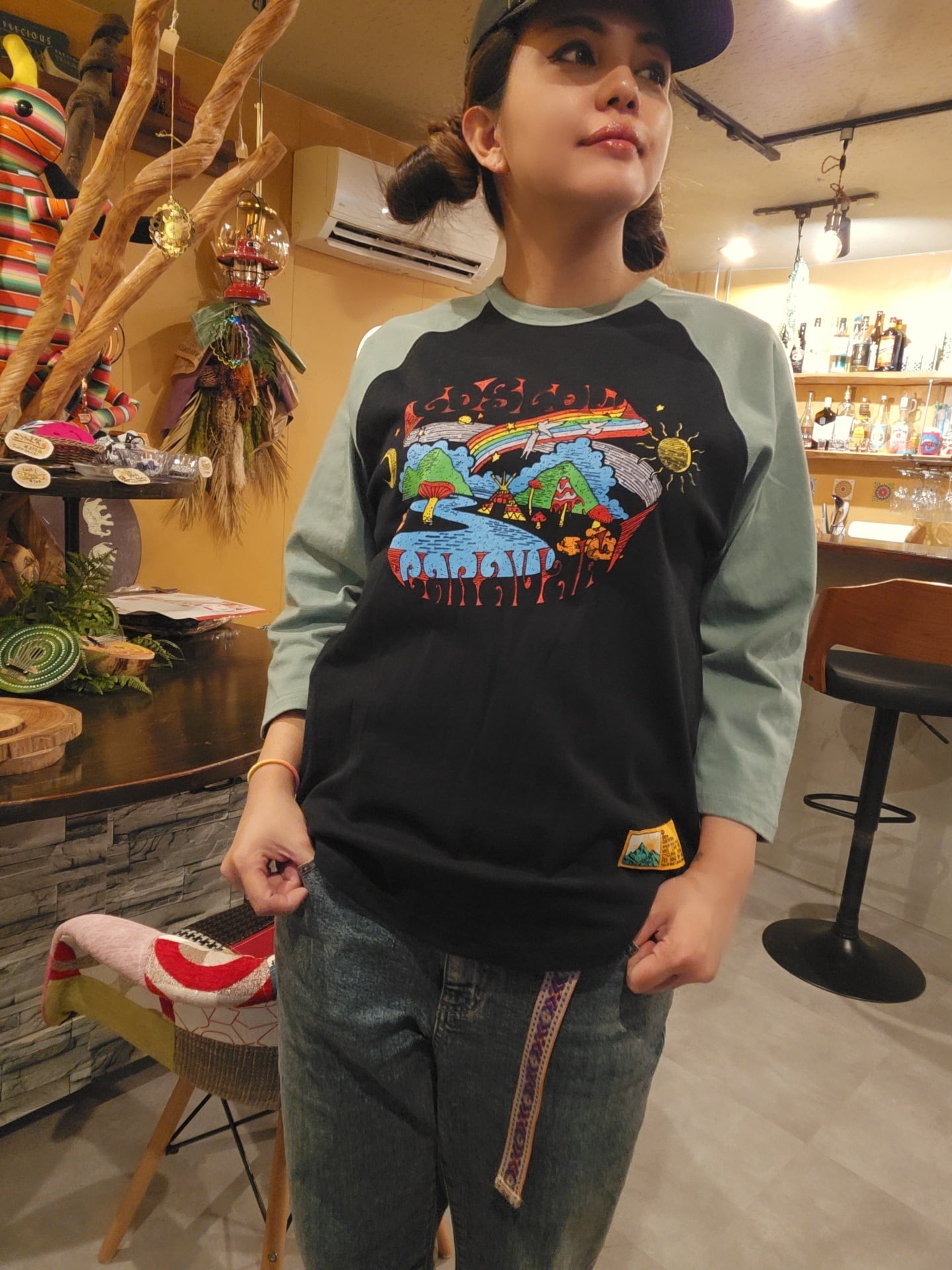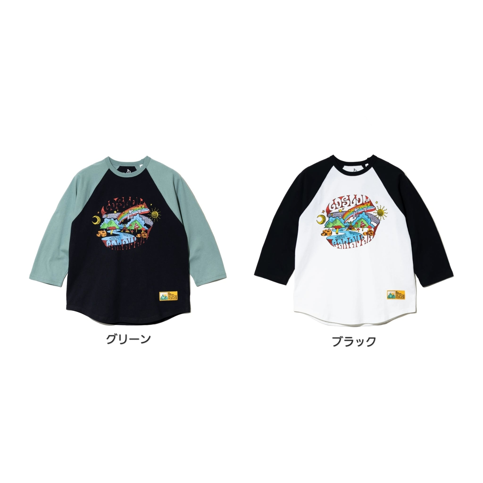 フロントには、シーズンテーマでもあるヒッピーライクなムードを落とし込んだ“go slow caravan”の世界観を表現したオリジナルグラフィックをプリント。自然や旅を感じさせるモチーフをポップに描き起こし、コーディネートの主役になる一枚に仕上げています。
