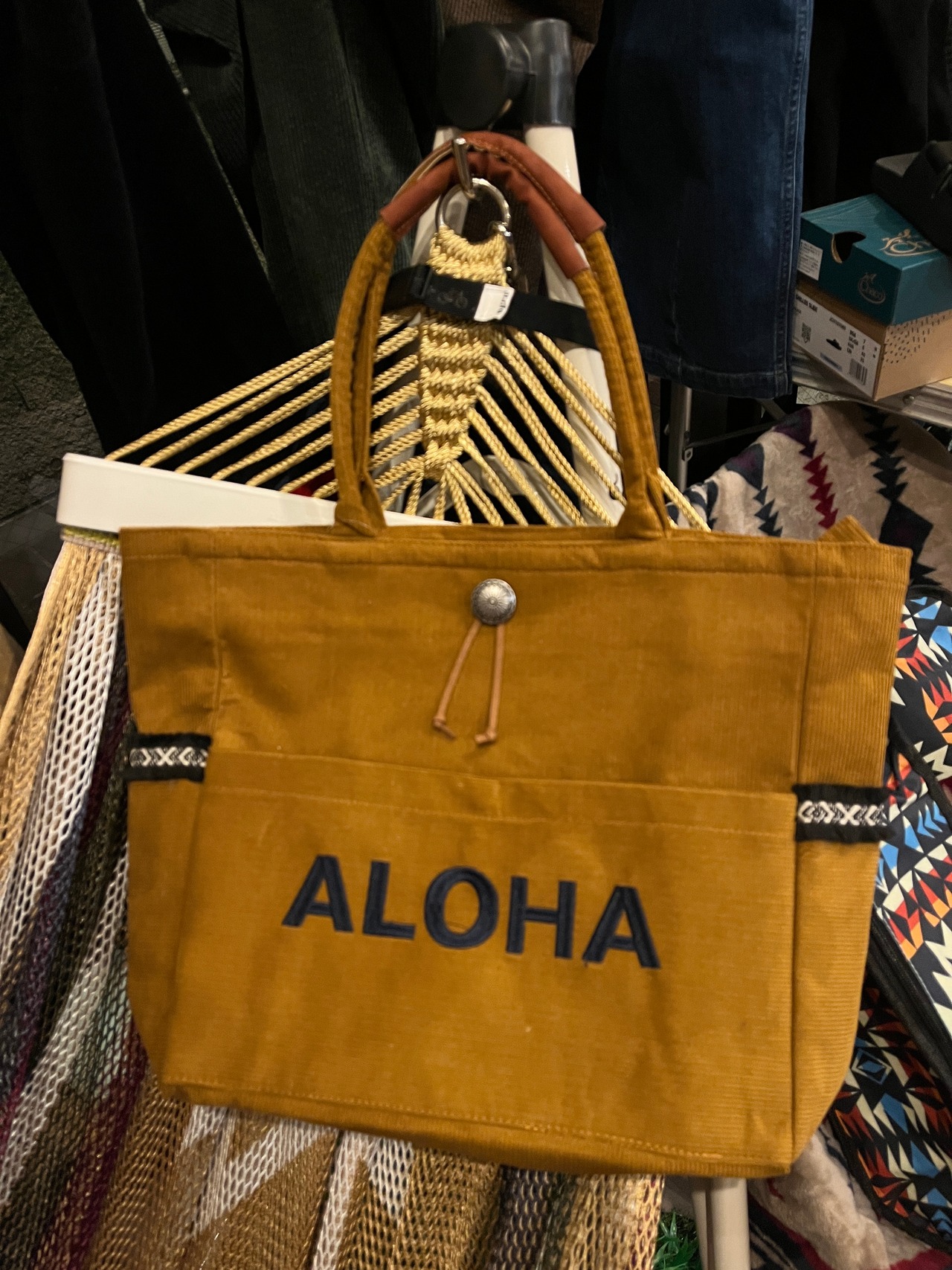 シンプルなコーデュロイに、大胆な【ALOHA】の刺繍がポイントのトートバッグ!