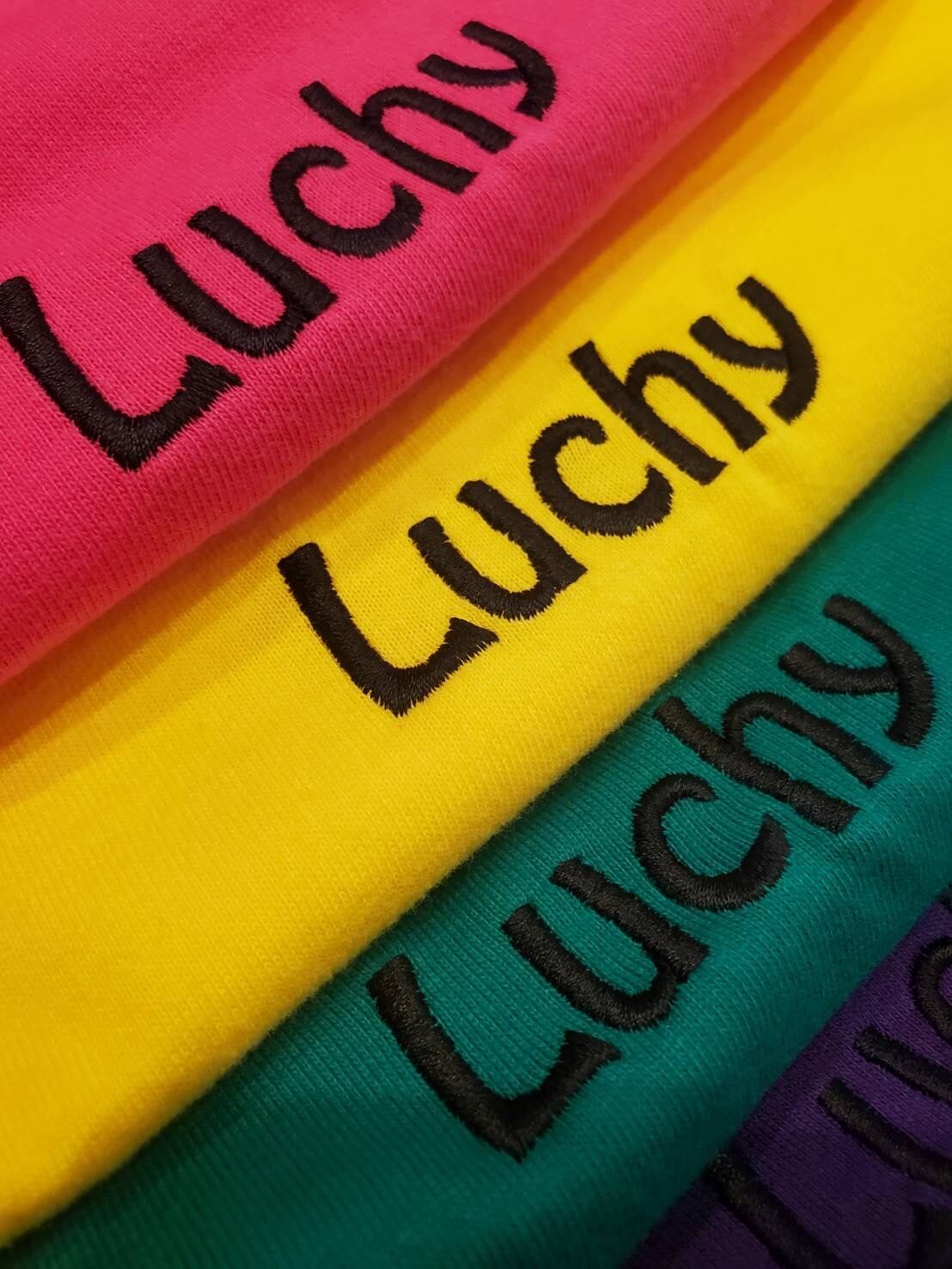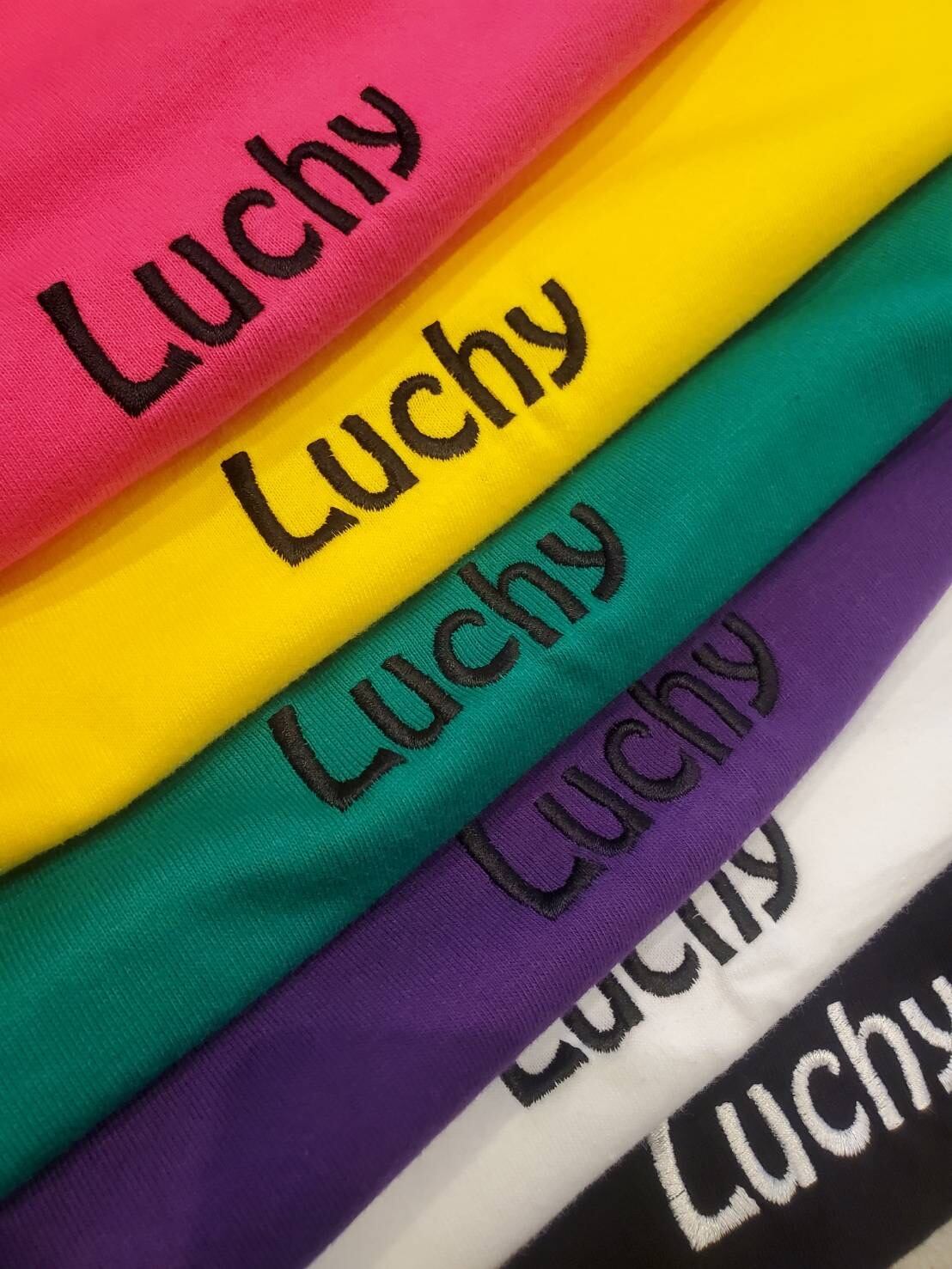 胸元に【Luchyロゴ】刺繍を入れたオリジナルアイテムです!