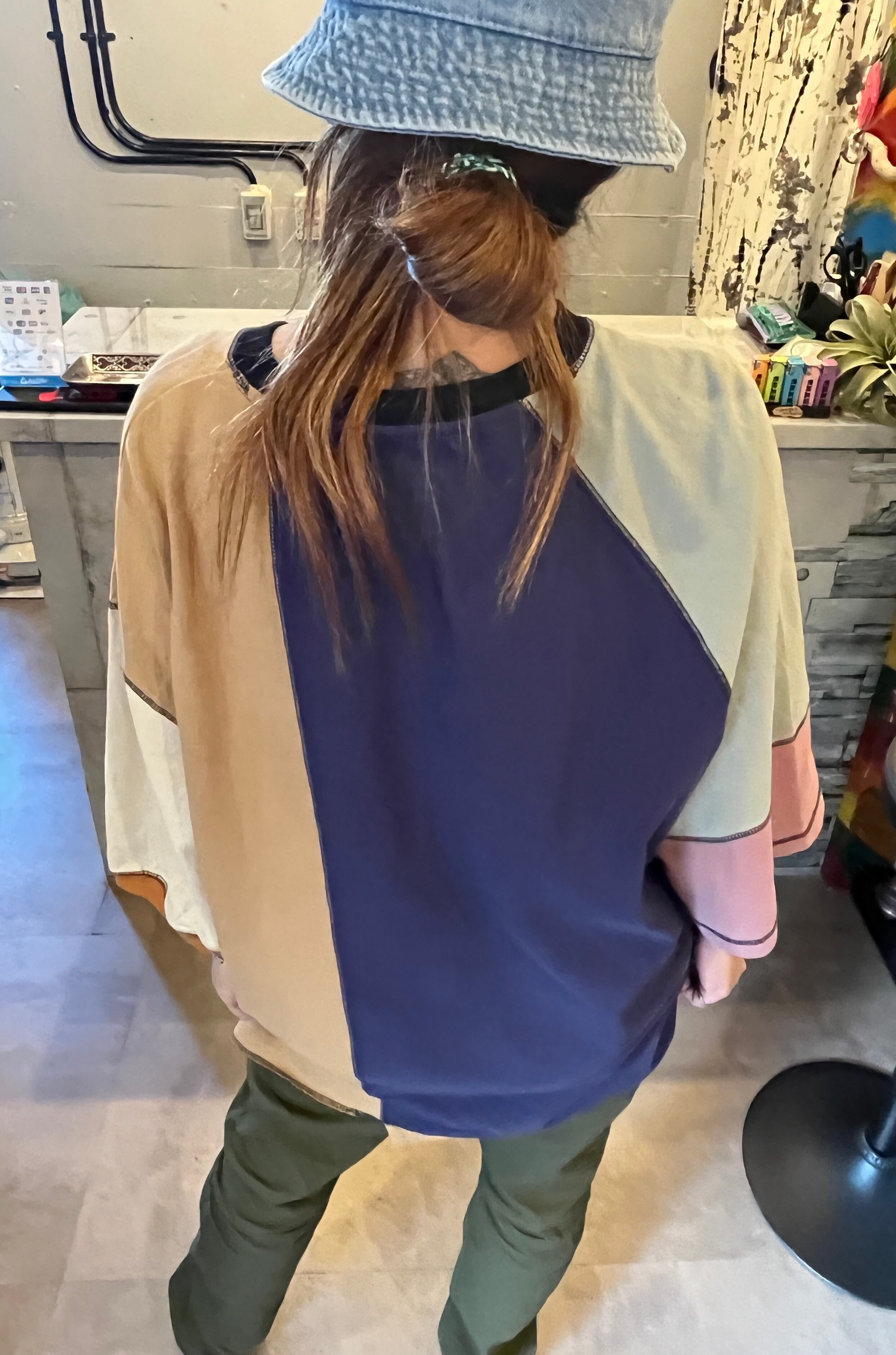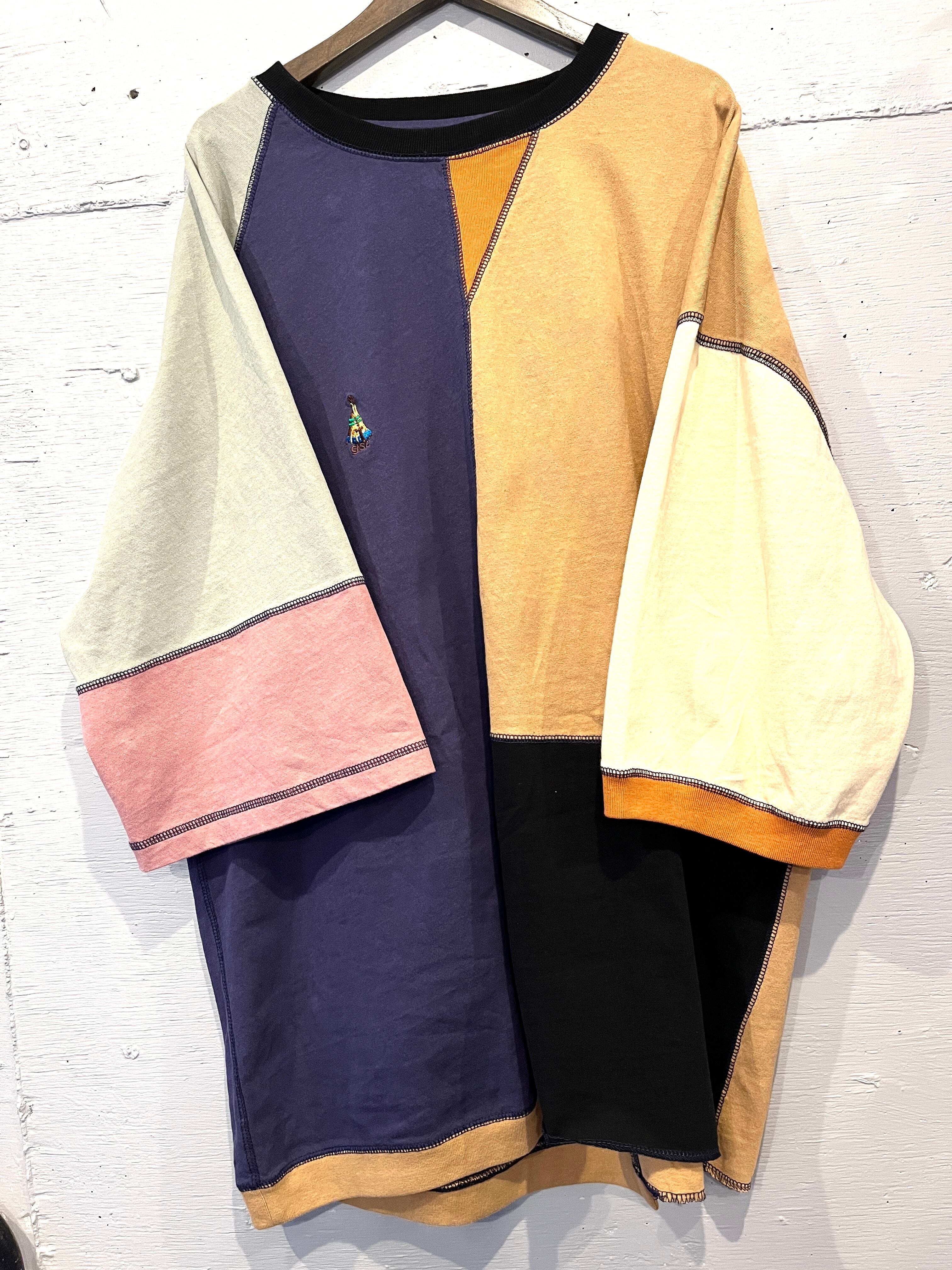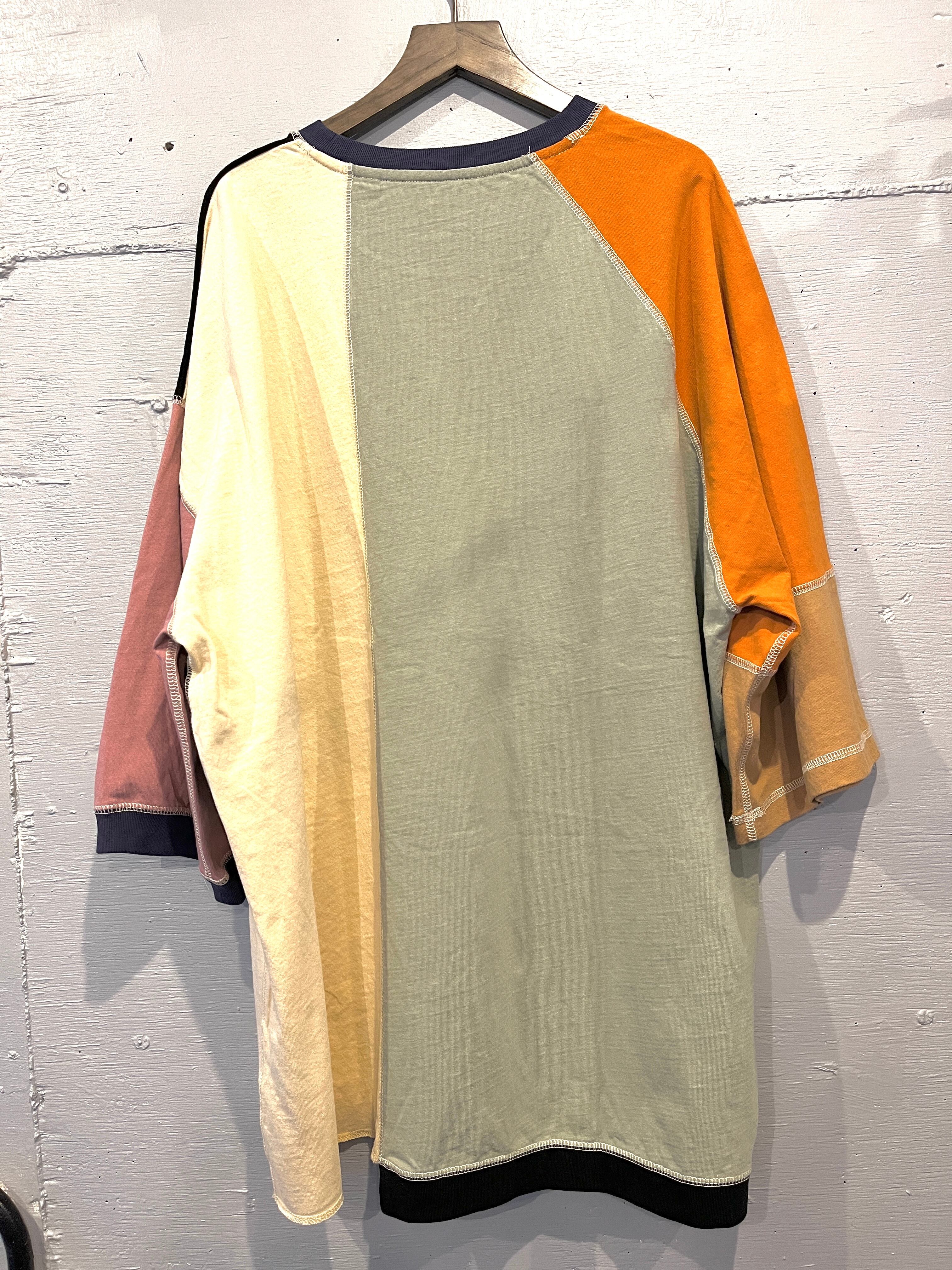 配色も切替もクレイジーなゆったりサイズのハーフスリーブTEE⭐︎