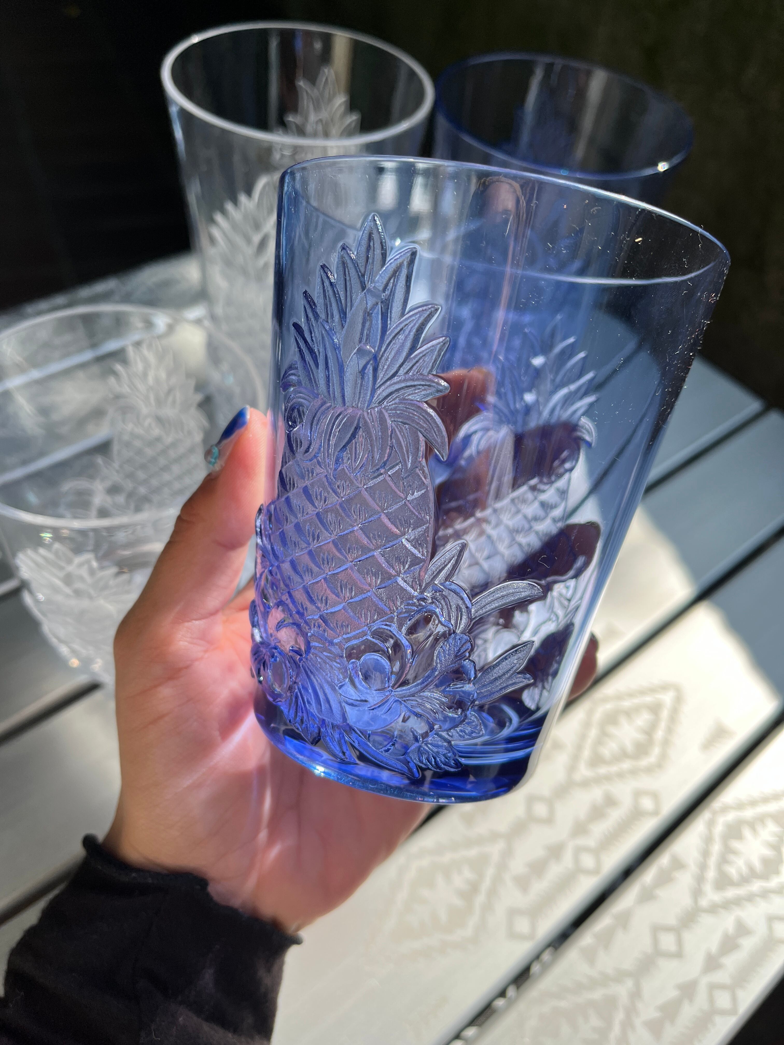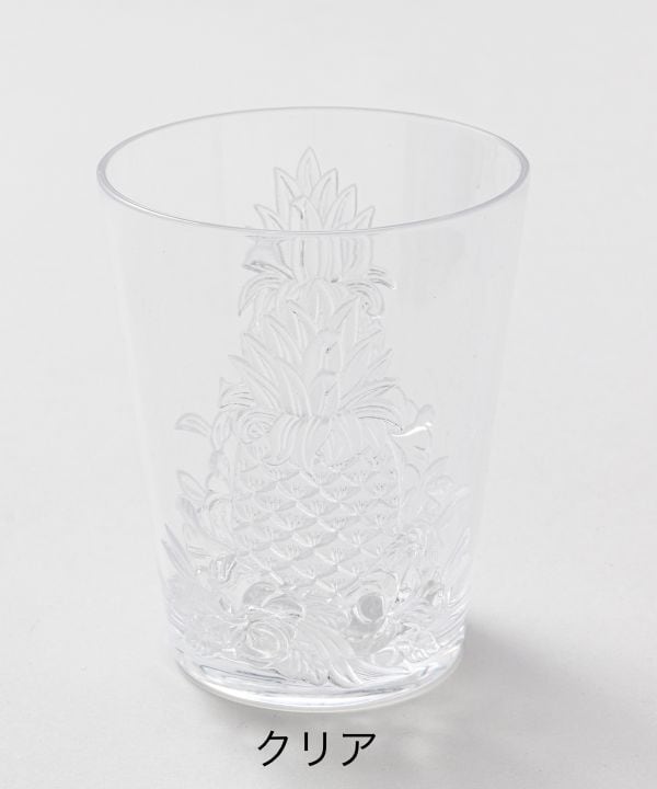 パイナップルが凹凸で描かれたHAWAIIの雰囲気たっぷりなアクリルグラス。