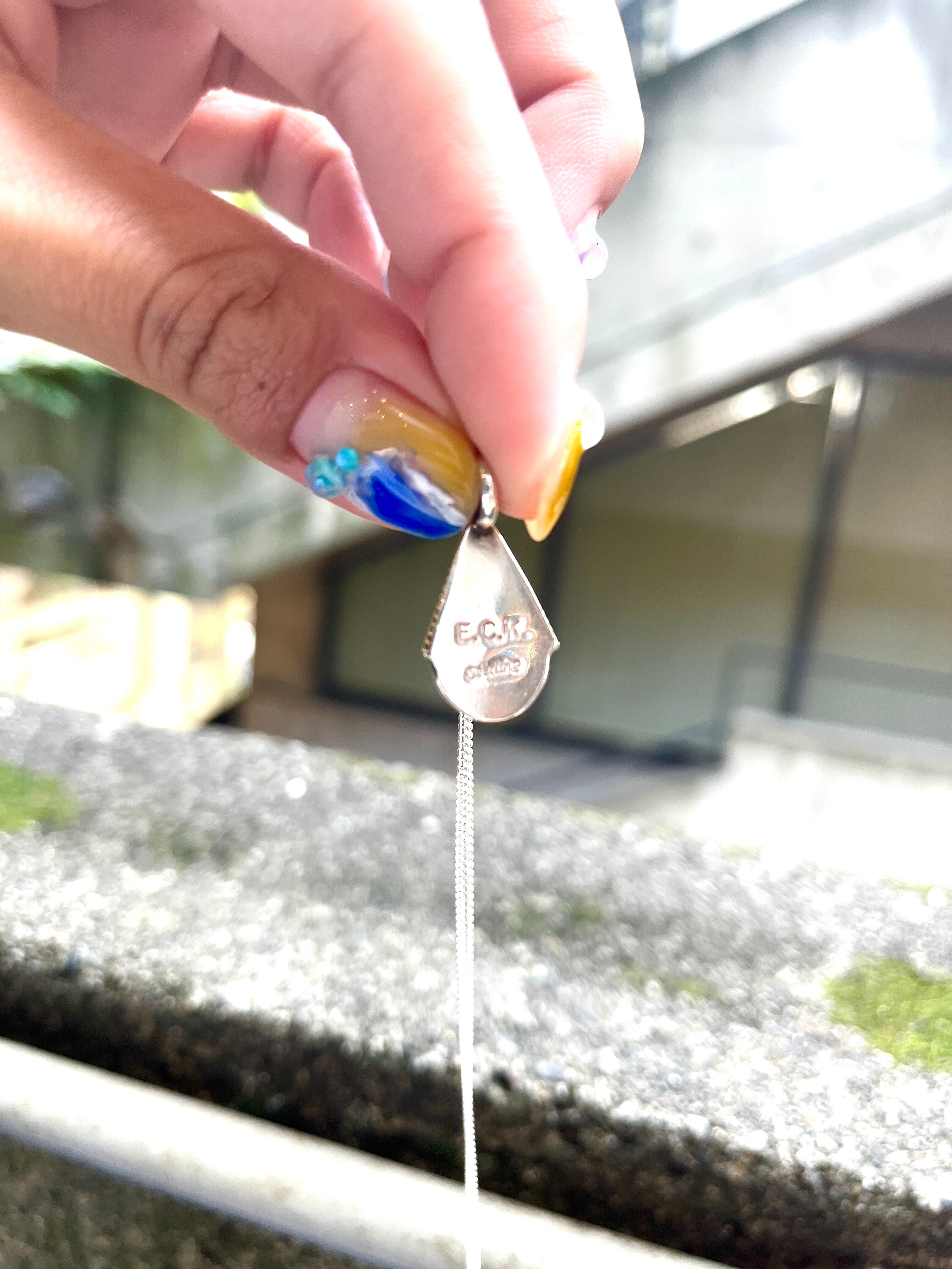 このネックレスのシェルは少しブラックシェルに近くくすみ色。
