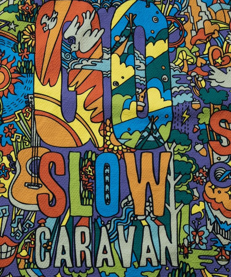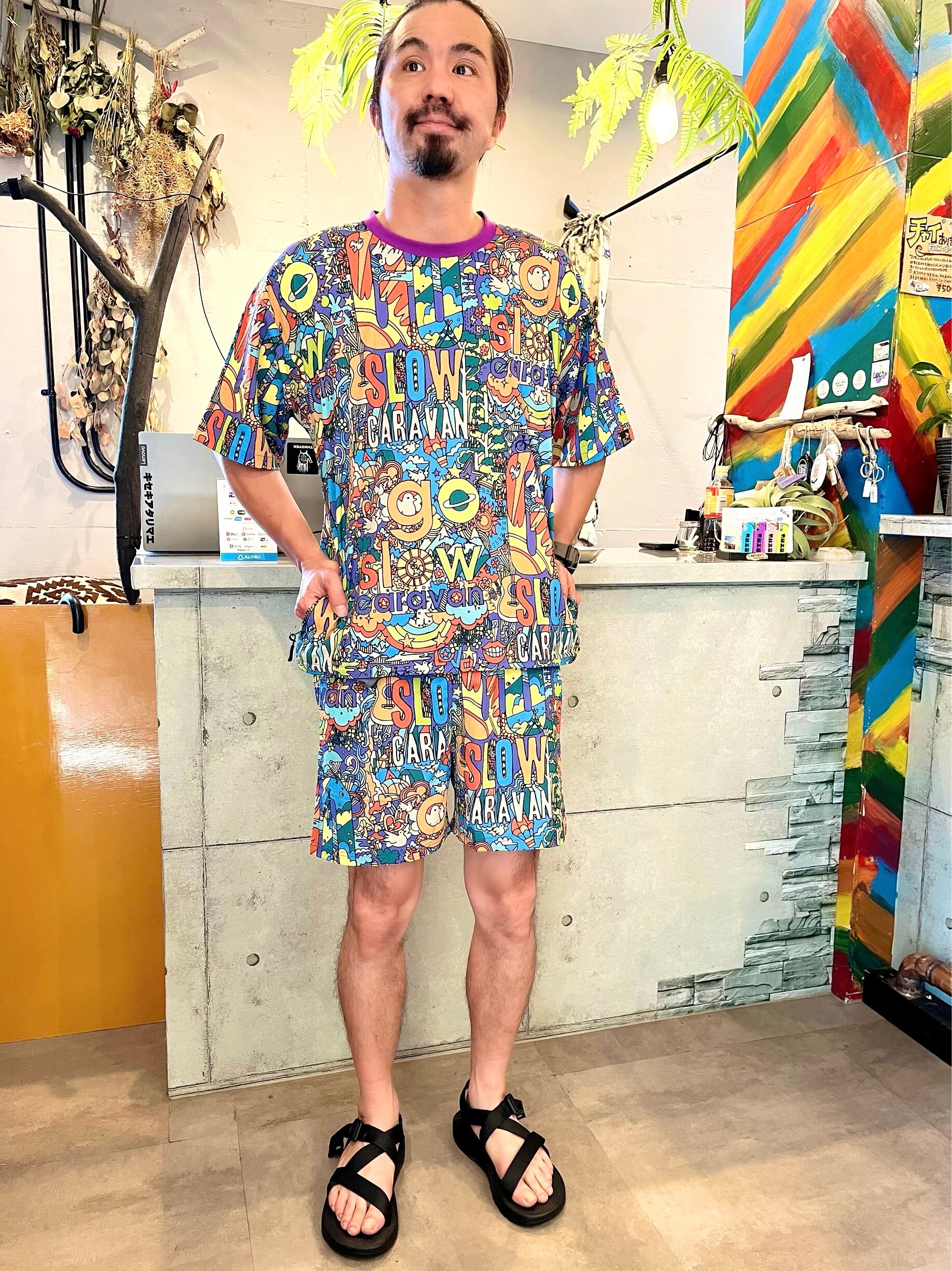 【go slow caravan】4WAY ストレッチサッカー総柄プリントS/S TEE