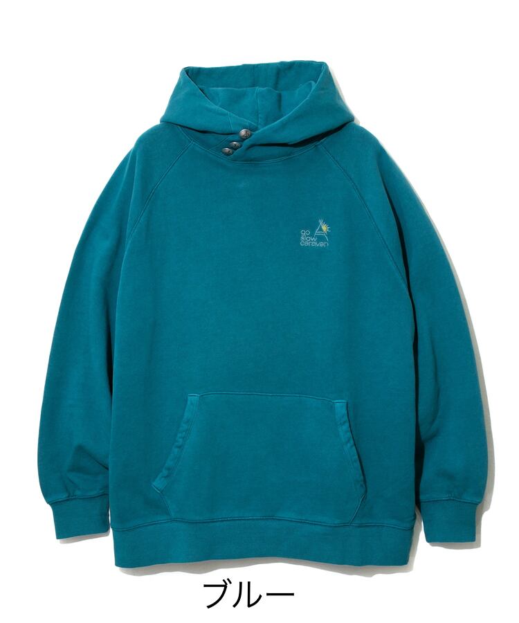 go slow caravanには欠かせない《空紡糸裏毛シリーズ》ピグメントダイ3ボタンプルパーカー☆