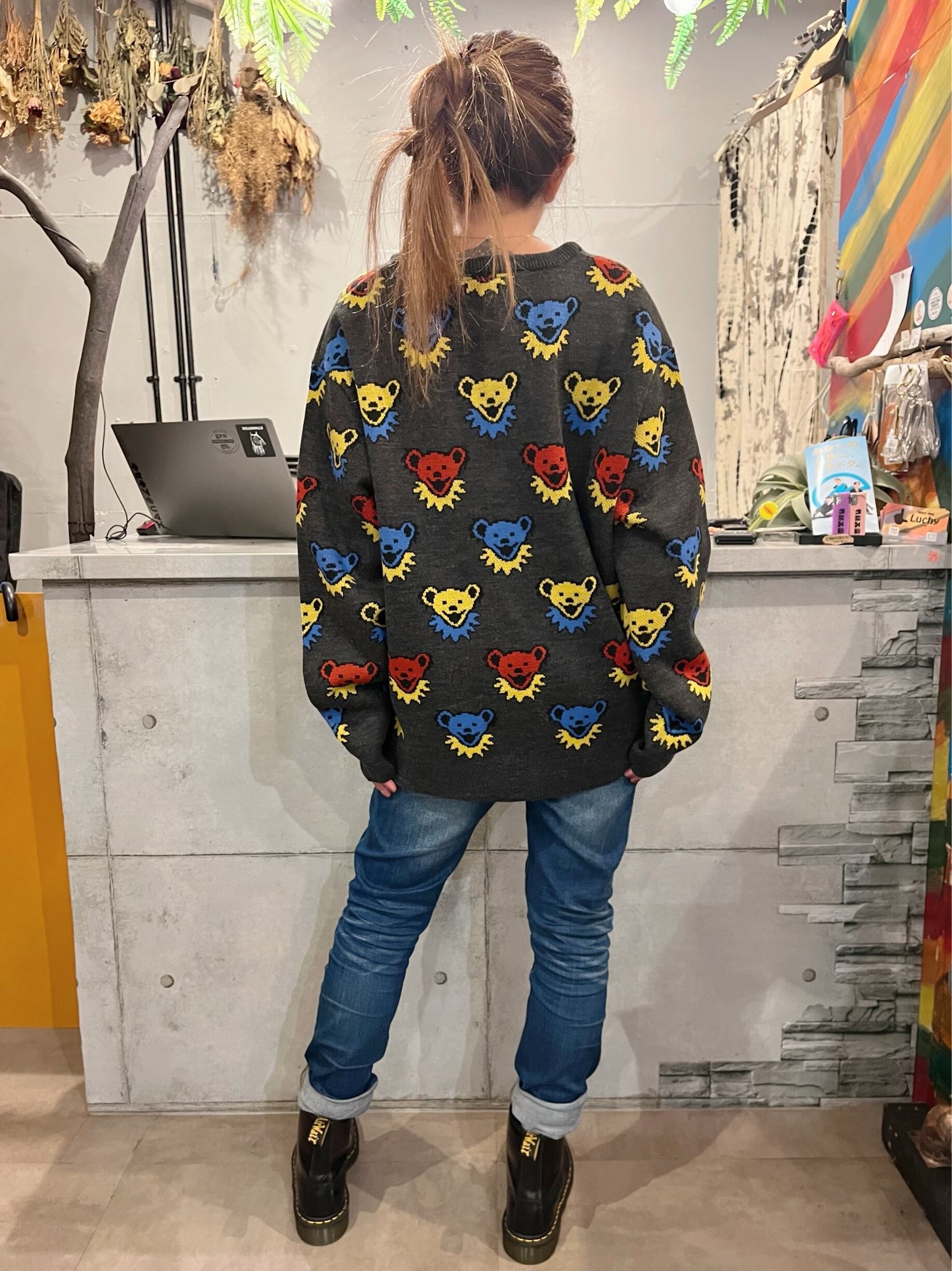 grateful dead×gsc DANCING BEARジャガードニットリラックスカーデ
