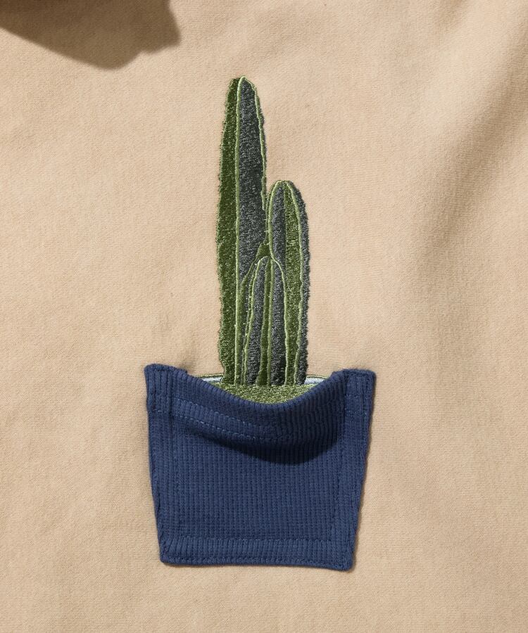 ポットに見立てた胸ポケットには多肉植物の刺繍が入ります!