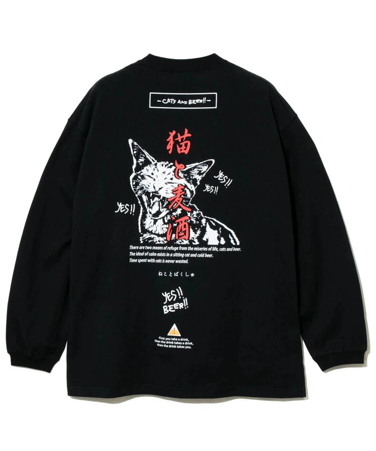 猫とビールが好きな方に届けたい1枚。スリット入りのBIGロングスリーブT。