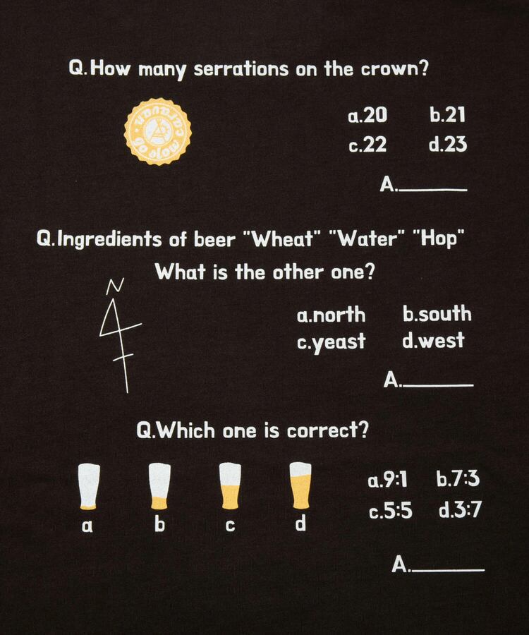 バックプリントにはビールクイズをプリント。暑い夏でも快適な機能素材『Drymix®』でキンキンに冷えたBEERを飲みに行きましょう☆